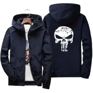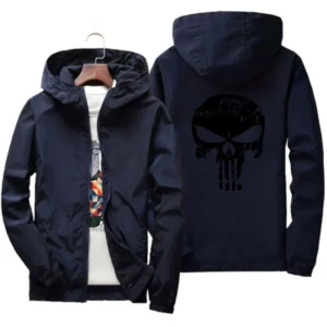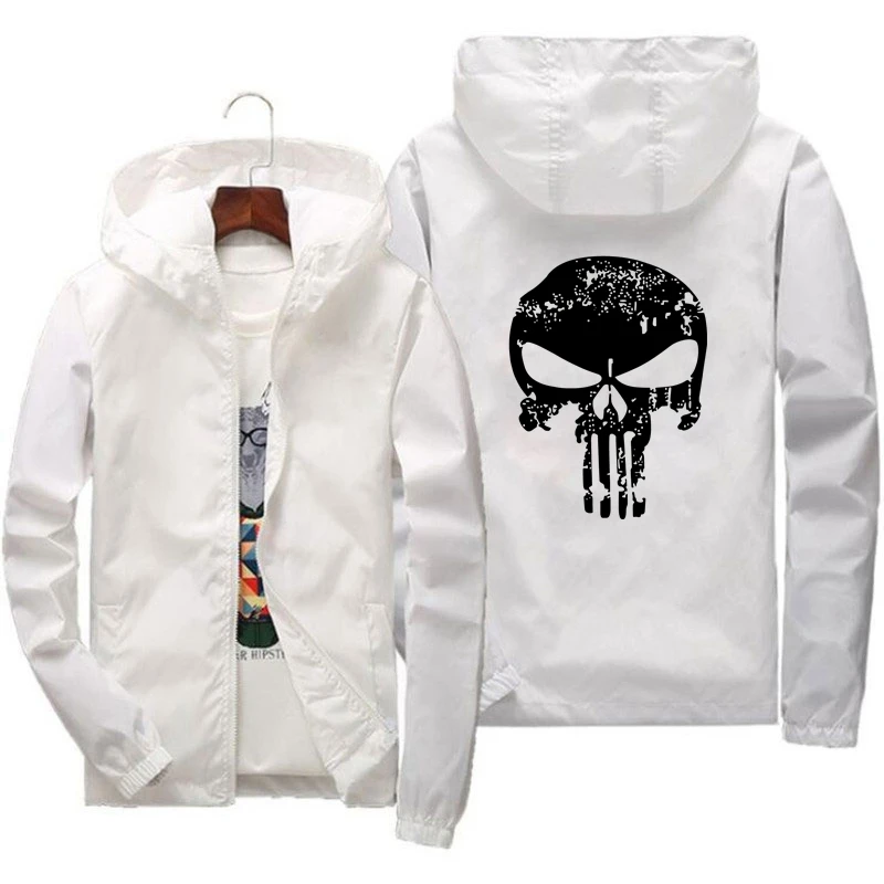 2024 Spring Casual Skull Windbreaker Thin Sunscreen Hooded Coat Mens Sports Pilot Cycling Camping Jacket Plus Size 7XL fashion
