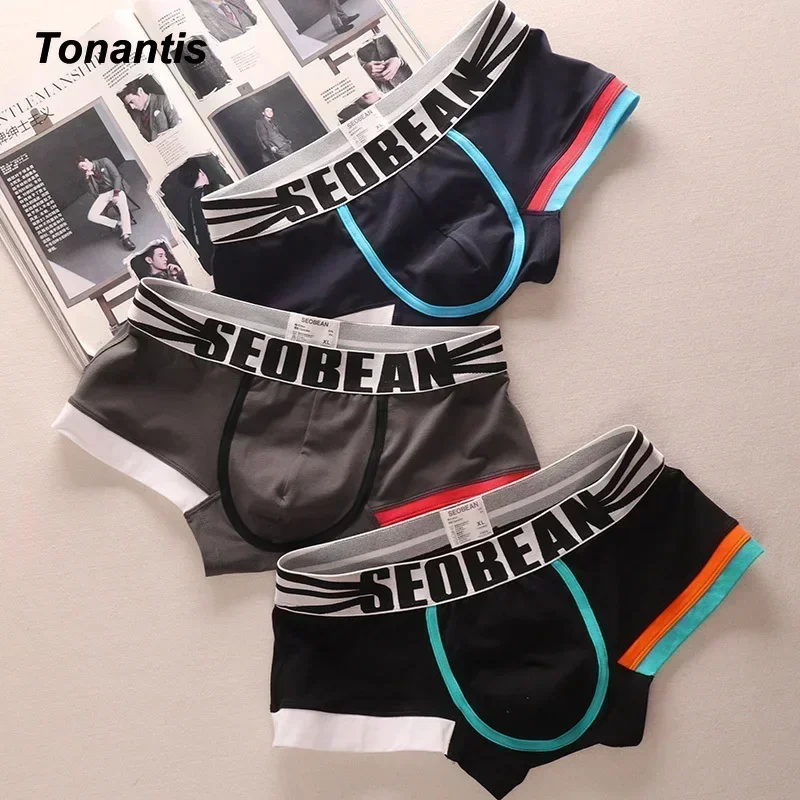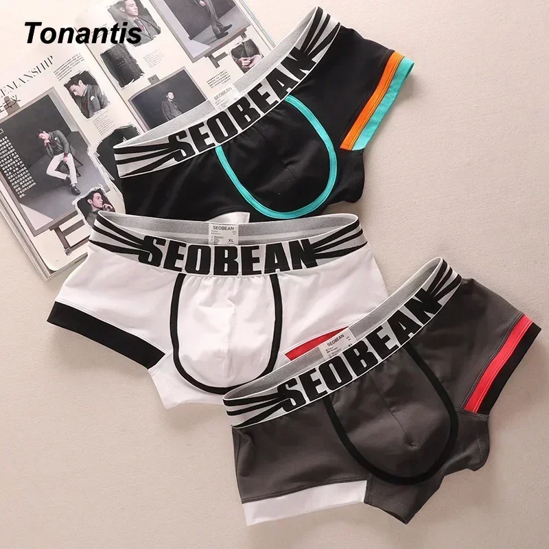 3PCS/SET Cotton Underwear For Men Fashion Multicolor Color Mid-Waist Boxer Shorts and Underpants Breathable Men’s Panties