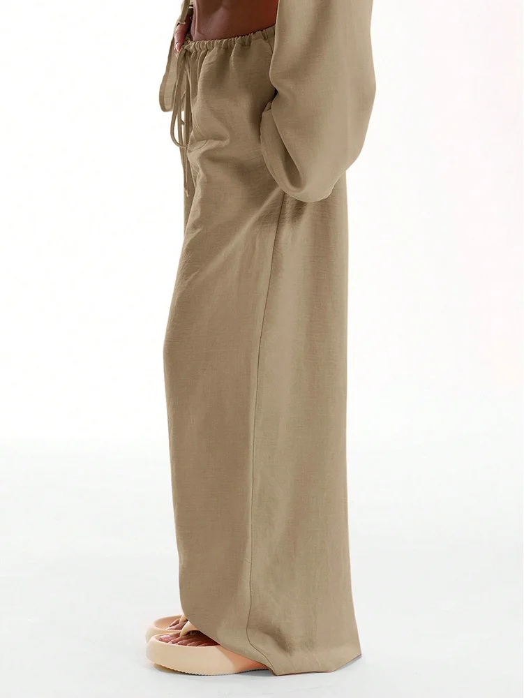 Elegant Solid Loose Baggy Pants Fashion Women High Waist Pocket Drawstring Trousers Sweatpant Casual Streetwear Wide Leg Pant