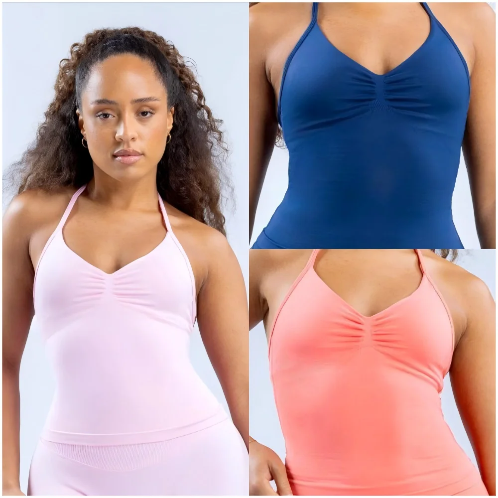 Impact Longline Strappy Top With Logo Backless Gym Clothes Women Scrunch Built-in Bra With Removable Cups Yoga Tank Tops