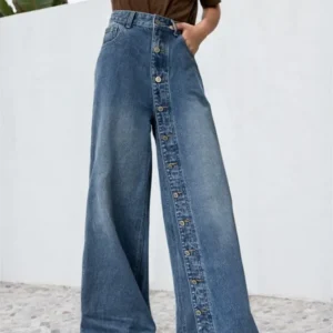 Krisstarsgirls 2025 New Women‘s Baggy Jeans Pants Spring Summer Buttoned Pockets High Waisted Boyfriends Jean Trousers for Woman
