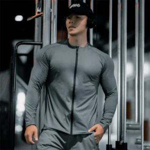 Men’s Compression Jacket cardigan zipper Shirts Light Weight Slim Fit Long Sleeve Workout T-Shirts gym elasticity coat men tops