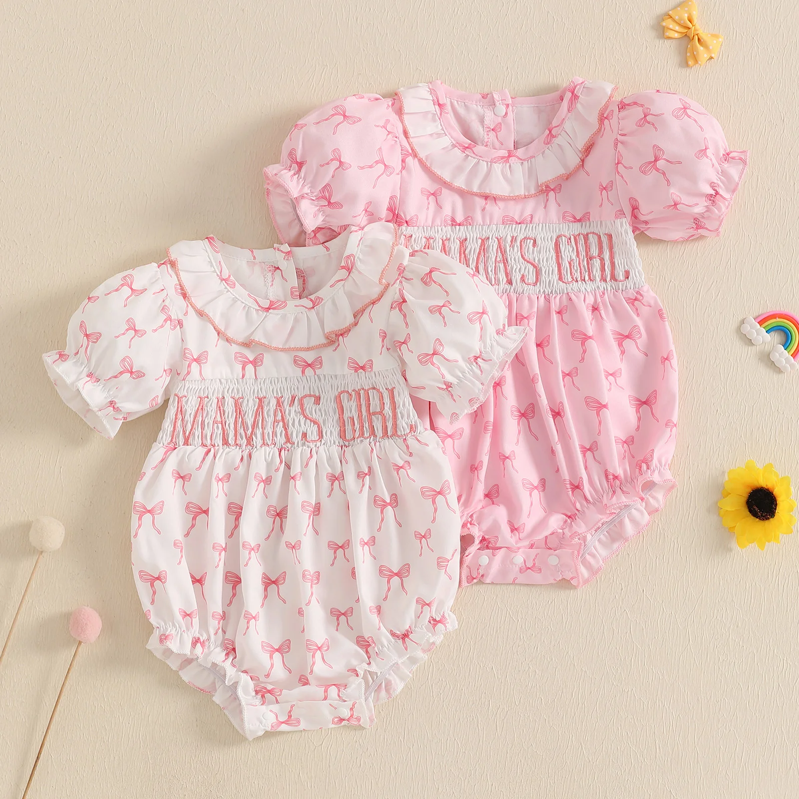 MISOWMNJOY Cute Baby Girls Romper Bodysuits for Newborn Summer Clothes Letter Embroidery Bow Print Short Sleeve Infant Jumpsuit