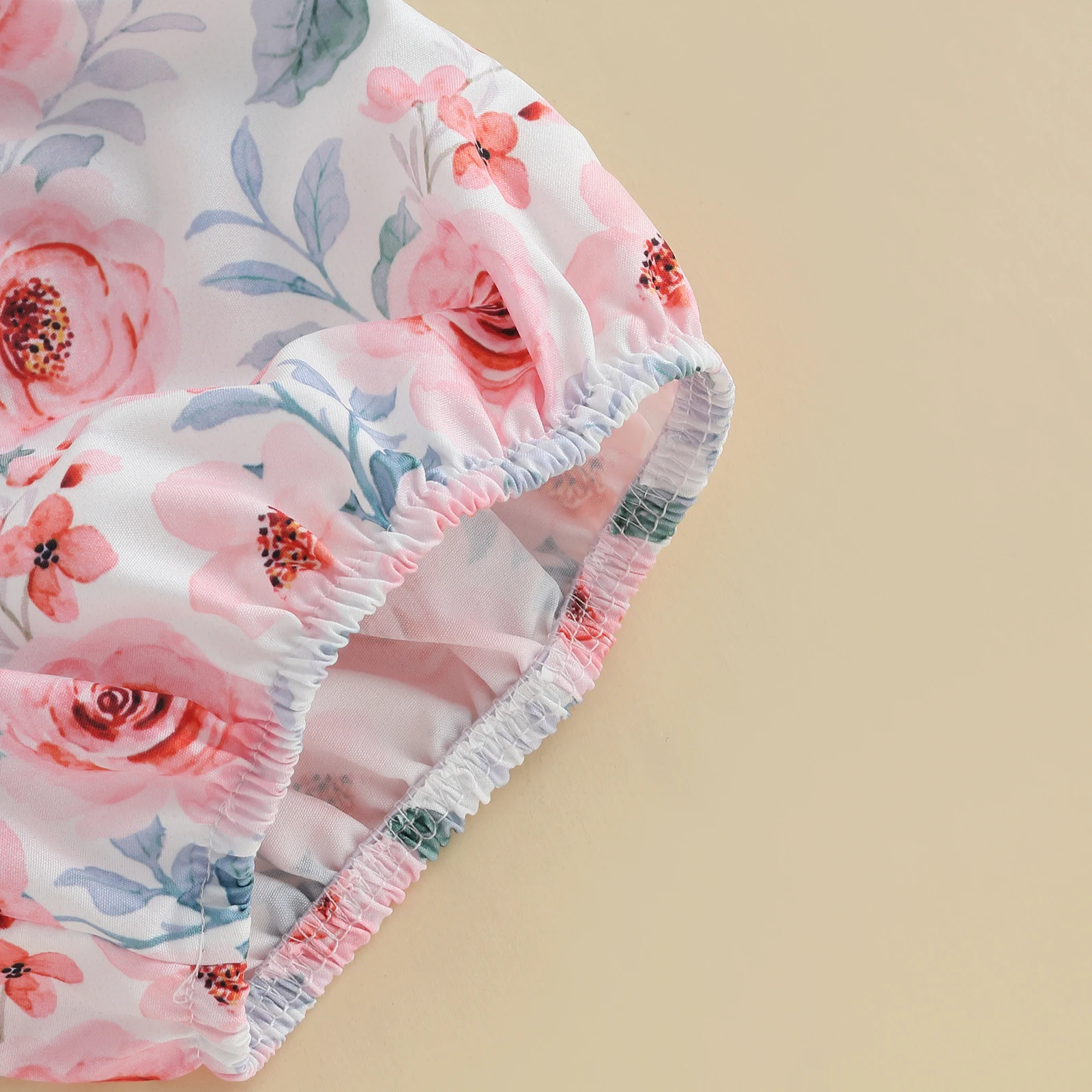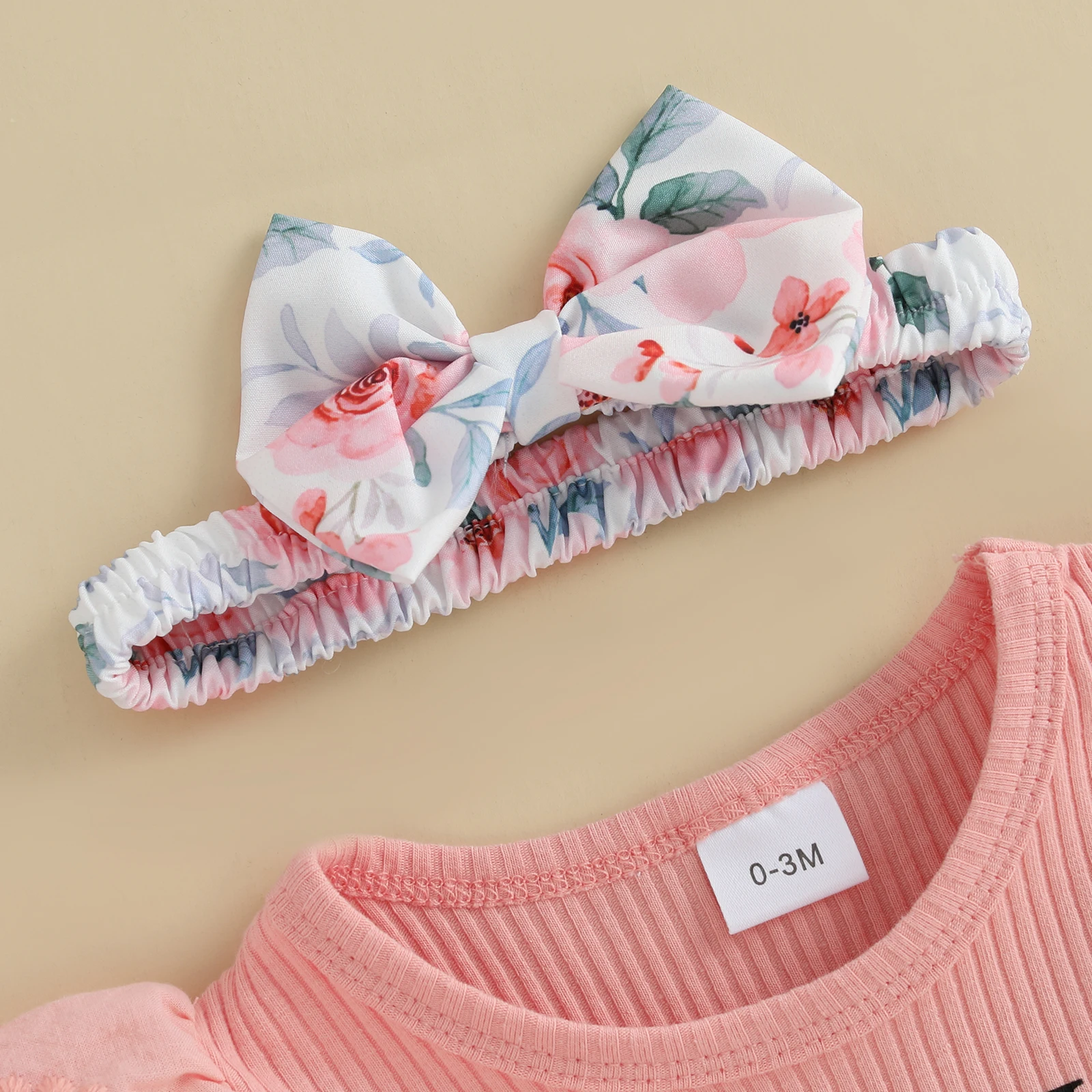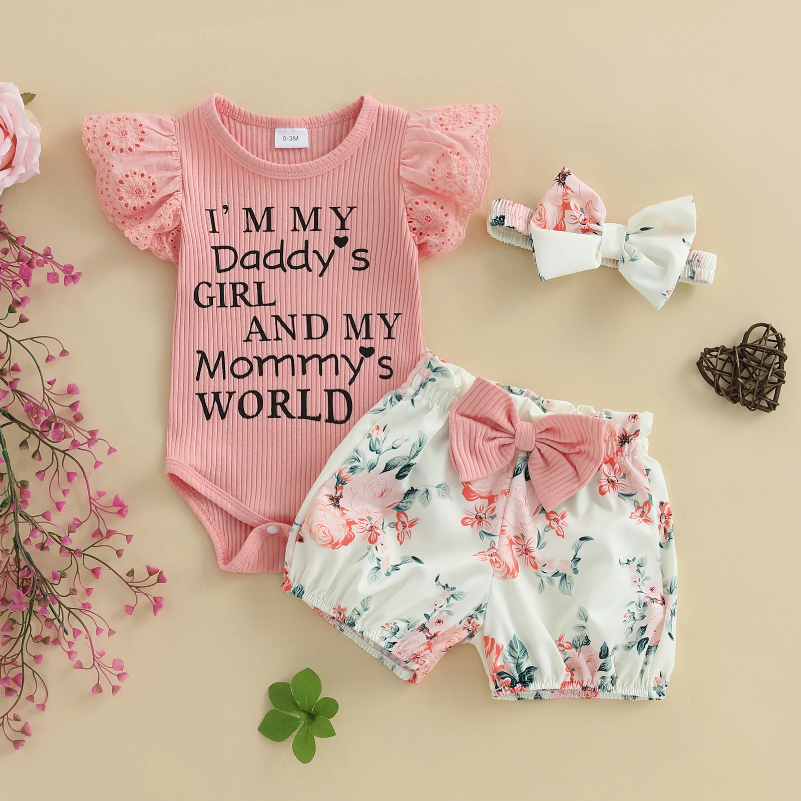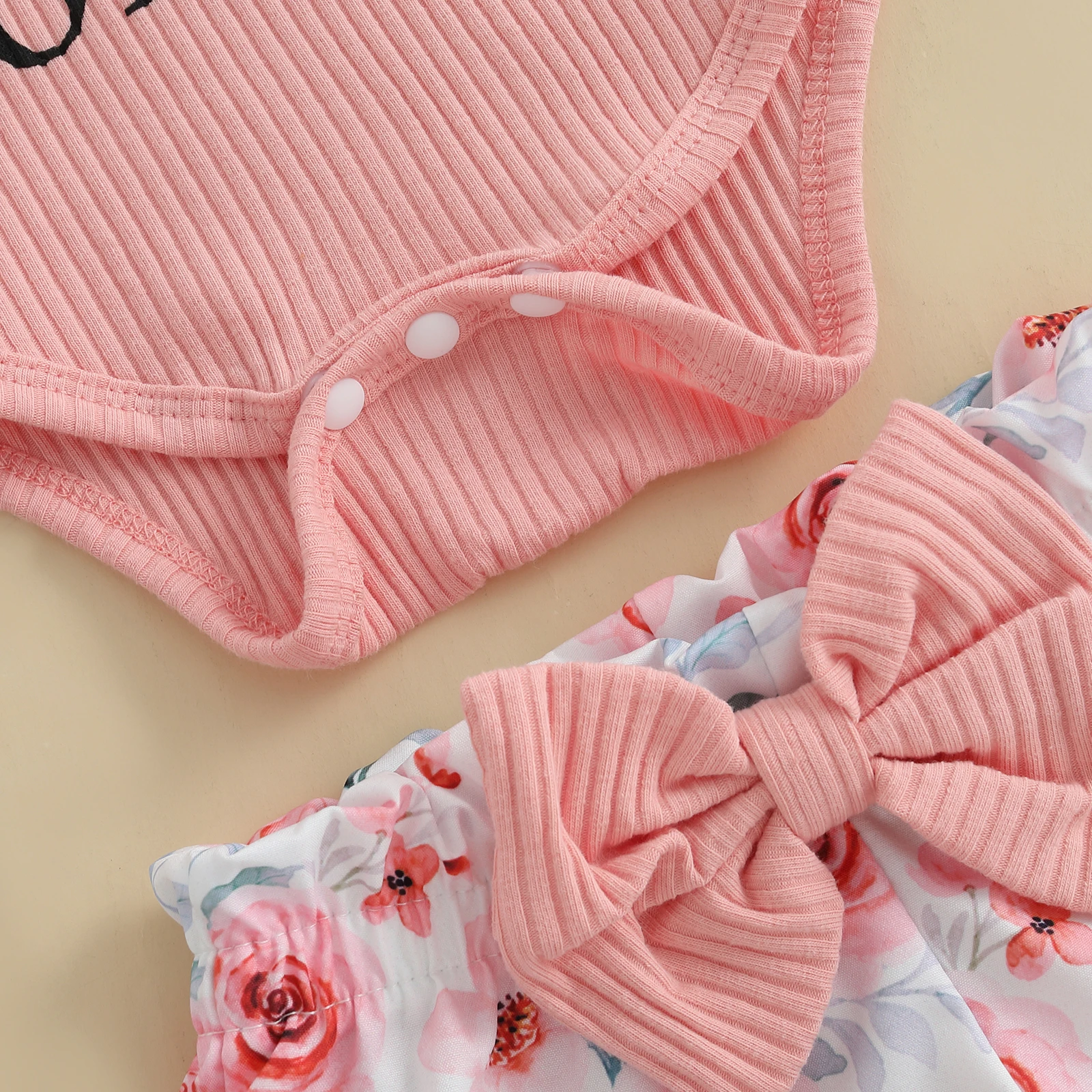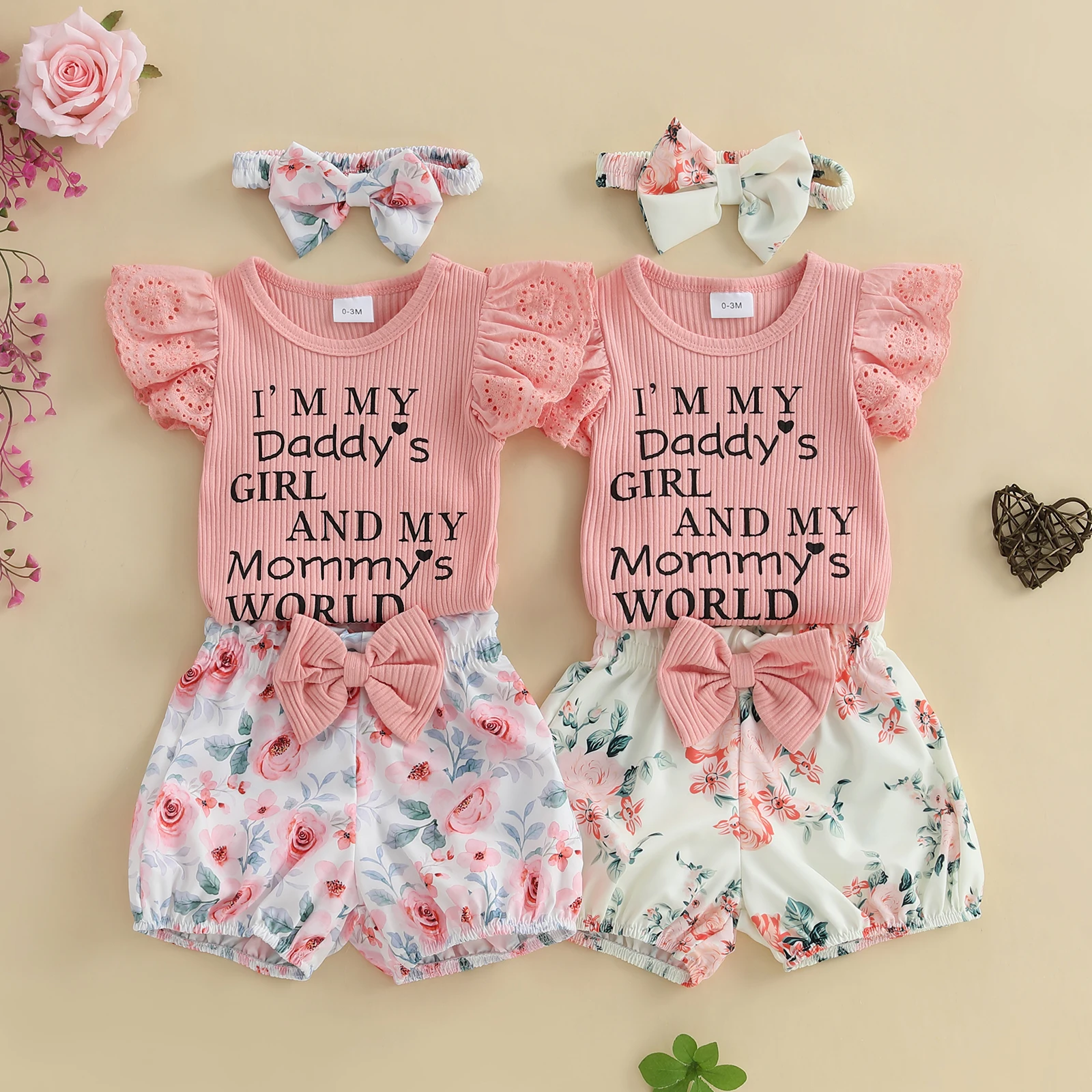 MISOWMNJOY Sweet Baby Girl Clothes for Summer Newborn Outfits Letter Print Romper Floral Print Shorts Headband 3Pcs Clothes Set
