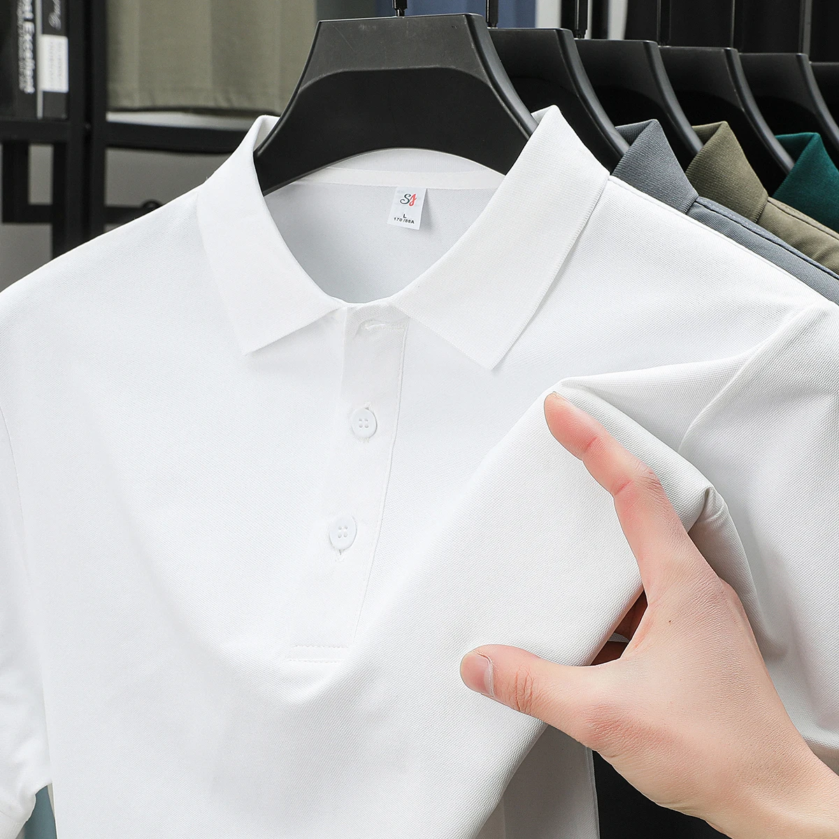 Summer New Korean Version Fashion Golf Lapel Polo Short Sleeve Business Men’s Solid Color Design Breathable Casual Cool T-shirt
