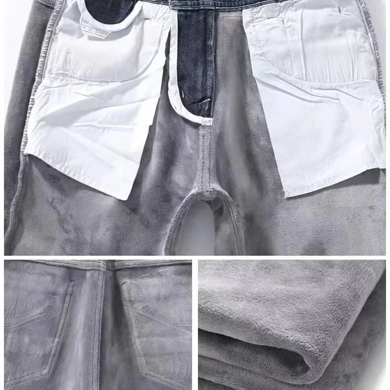 Winter Thermal Men Basic Straight Leg Denim Pants Male Holiday Concise Casual Denim Trousers Solid Thicken Snow Warm Plush Jeans