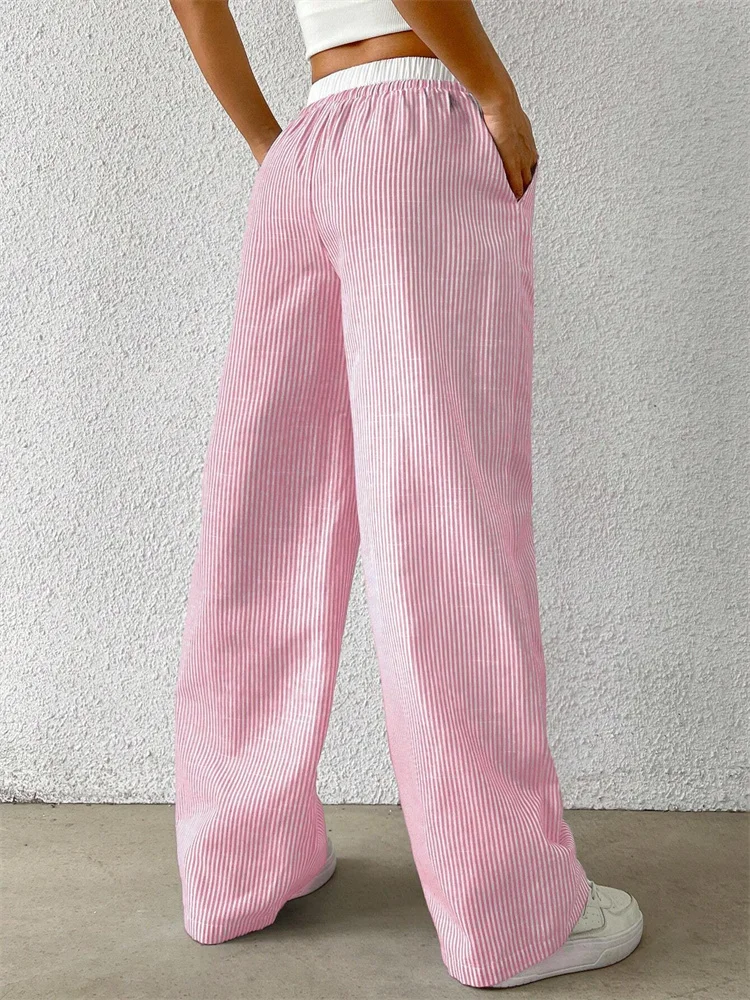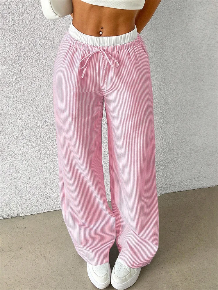 Women’s Casual Striped Woven Wide Leg Pants Fall Winter 2024 Casual Stylish Full Length Trousers Y2K Clothes Streetwear