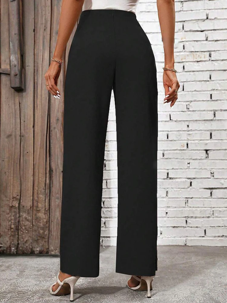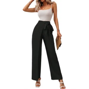 Be the first to review “Women’s Spring Autumn New Fashion Elegant Solid Color Pocket Elastic Bow Casual High Waist Loose Wide Leg Straight Long Pants”